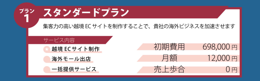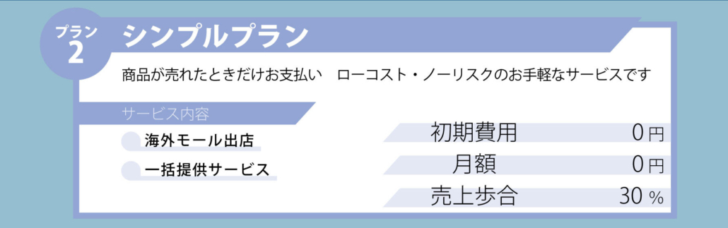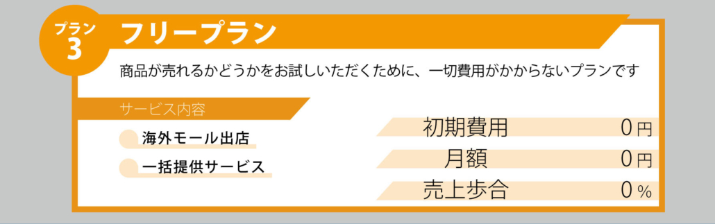これから越境ECを始める皆様に、費用が完全無料のプランです